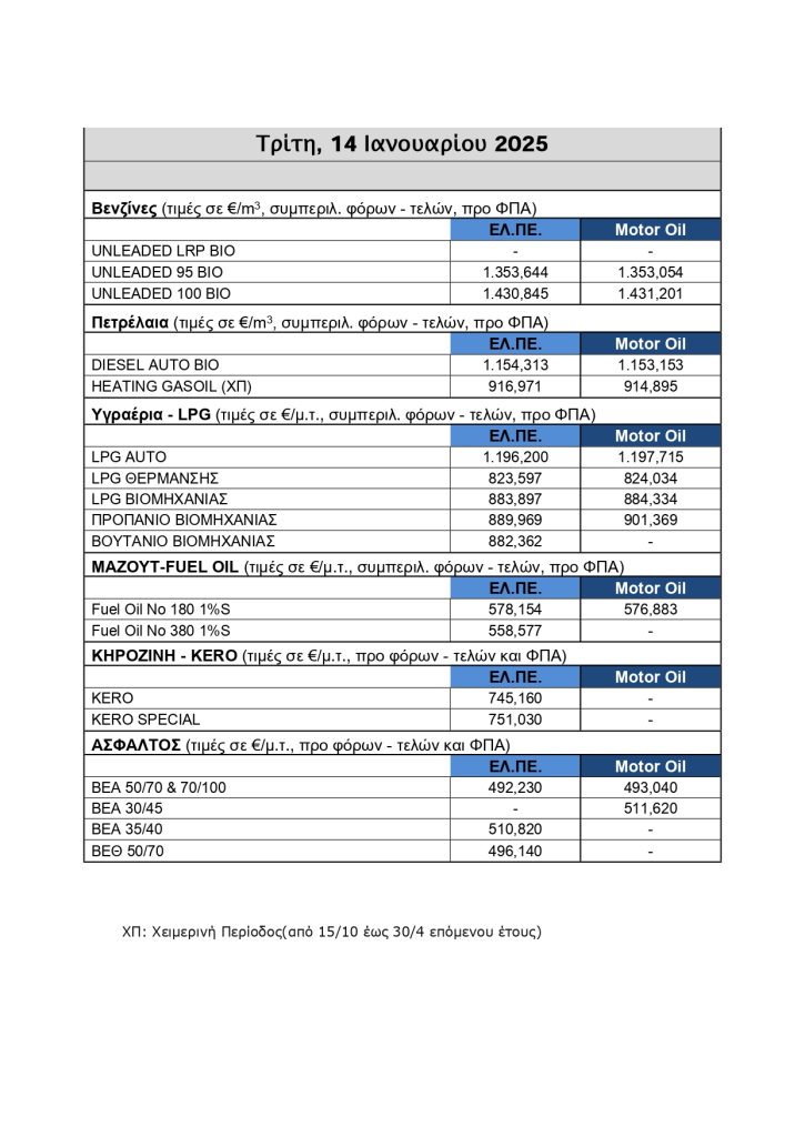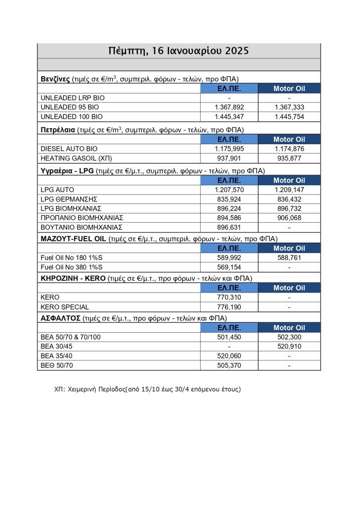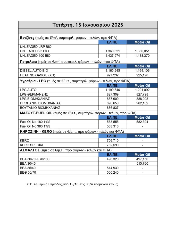 ΑΝΑΚΟΙΝΩΣΕΙΣΤΙΜΕΣ ΔΙΥΛΙΣΤΗΡΙΟΥ - ΤΙΜΕΣ ΚΑΥΣΙΜΩΝ -ΤΙΜΕΣ ΑΡΓΟΥ
