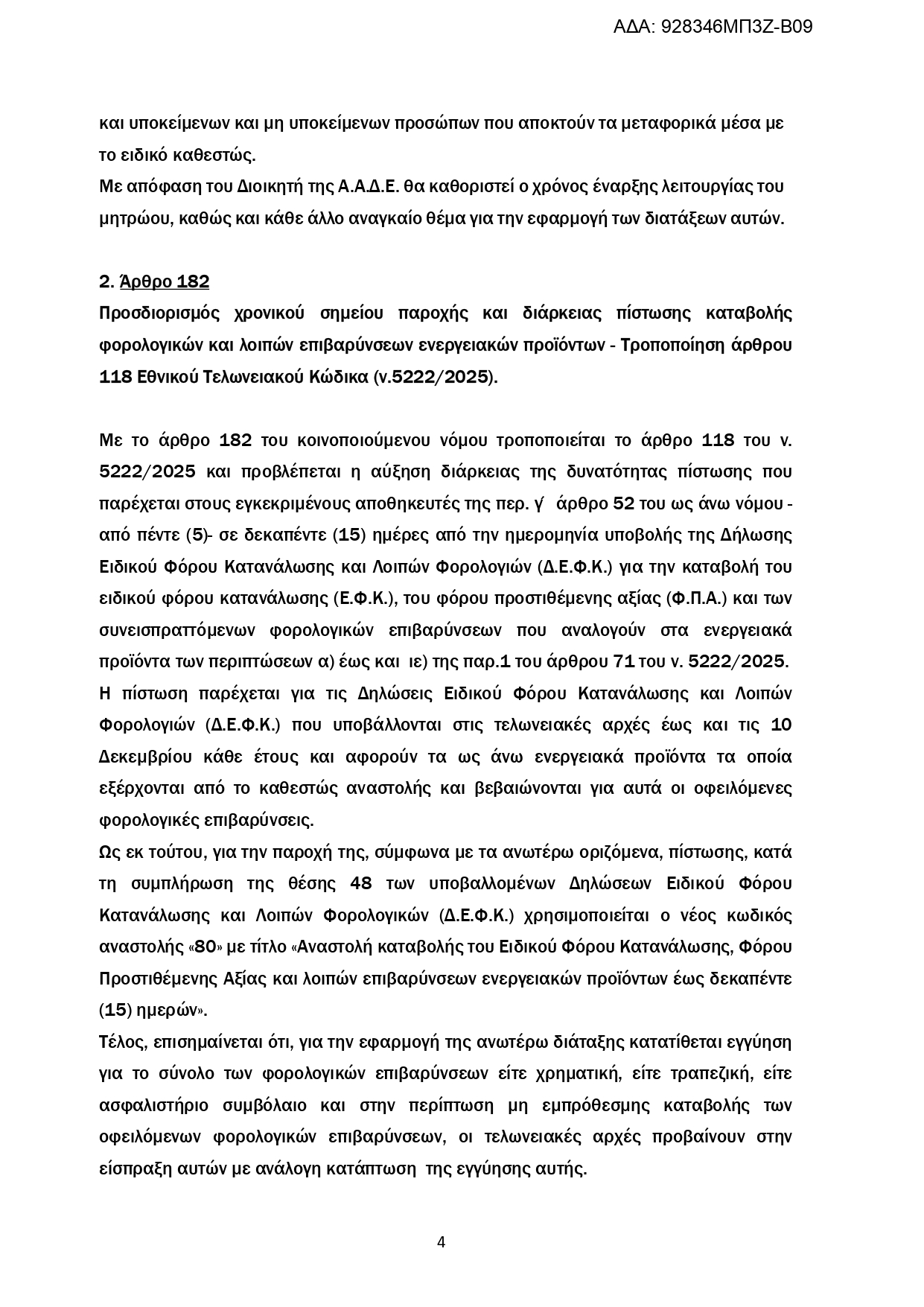 164 του ν.5222/2025 εξακολουθούν να ισχύουν για τις συναλλαγές του πετρελαίου