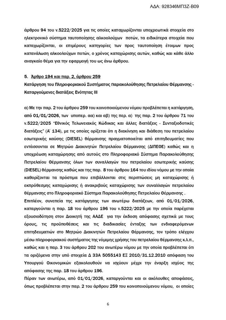5. Άρθρο 194 και παρ. 2, άρθρου 259 Κατάργηση του Πληροφοριακού Συστήματος Παρακολούθησης Πετρελαίου Θέρμανσης – Καταργούμενες διατάξεις Ενότητας ΙΙΙ