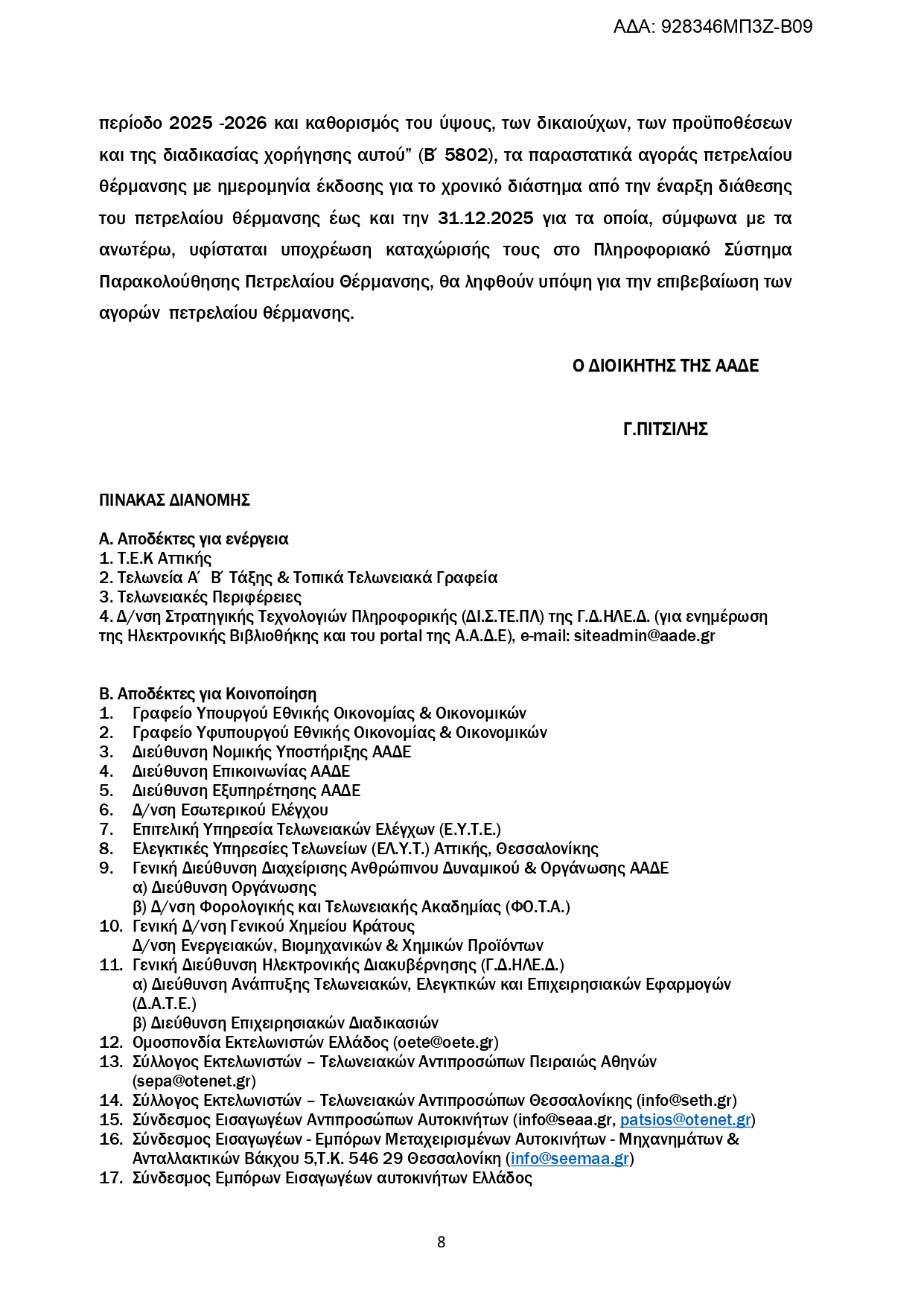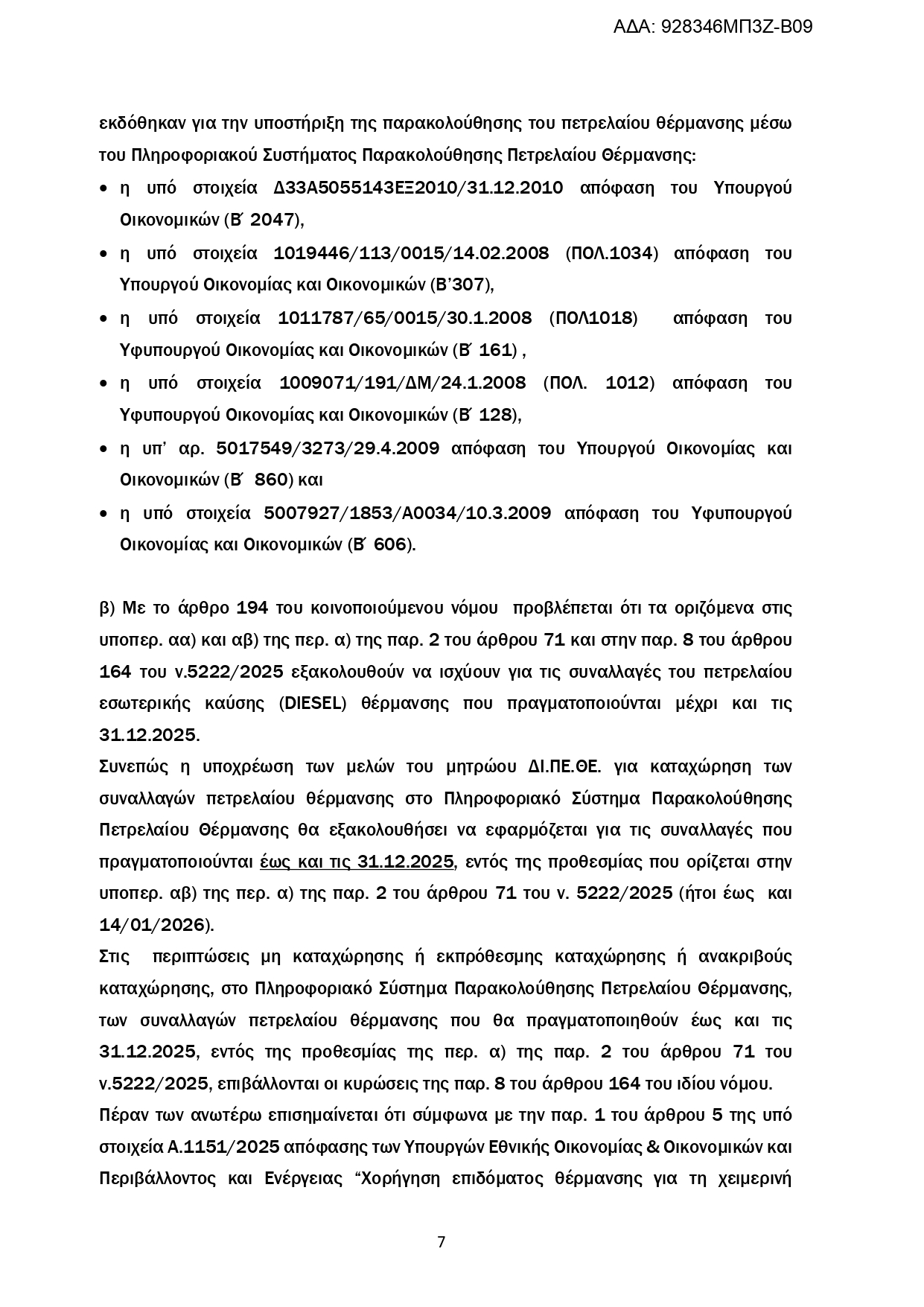 του πετρελαίου θέρμανσης έως και την 31.12.2025 για τα οποία, σύμφωνα με τα